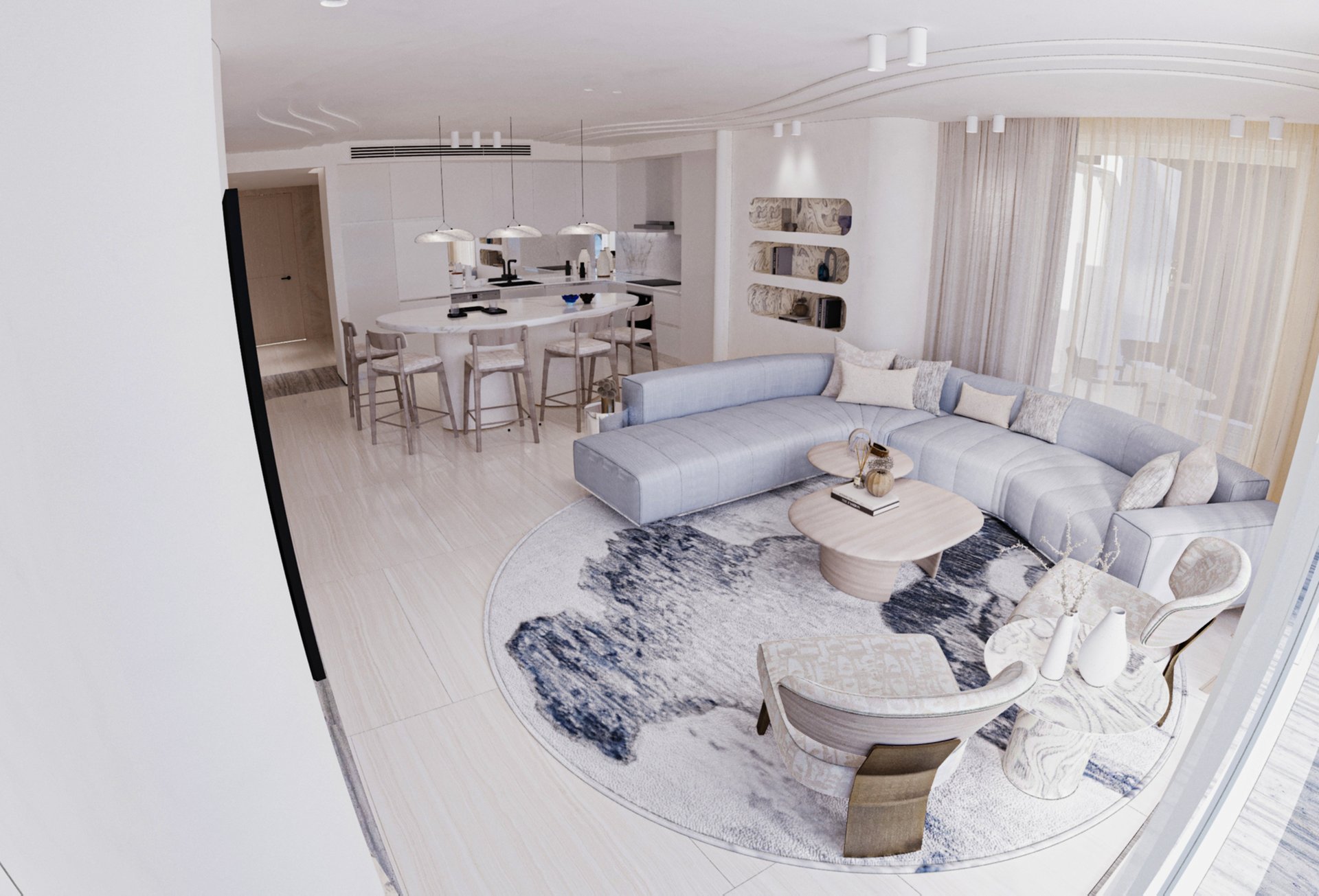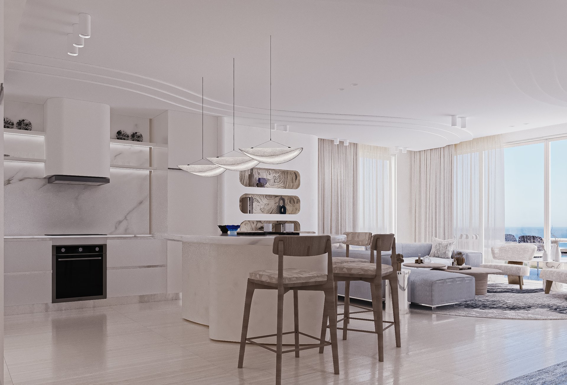 "interiors inspired by the sea, designed for a serene escape "