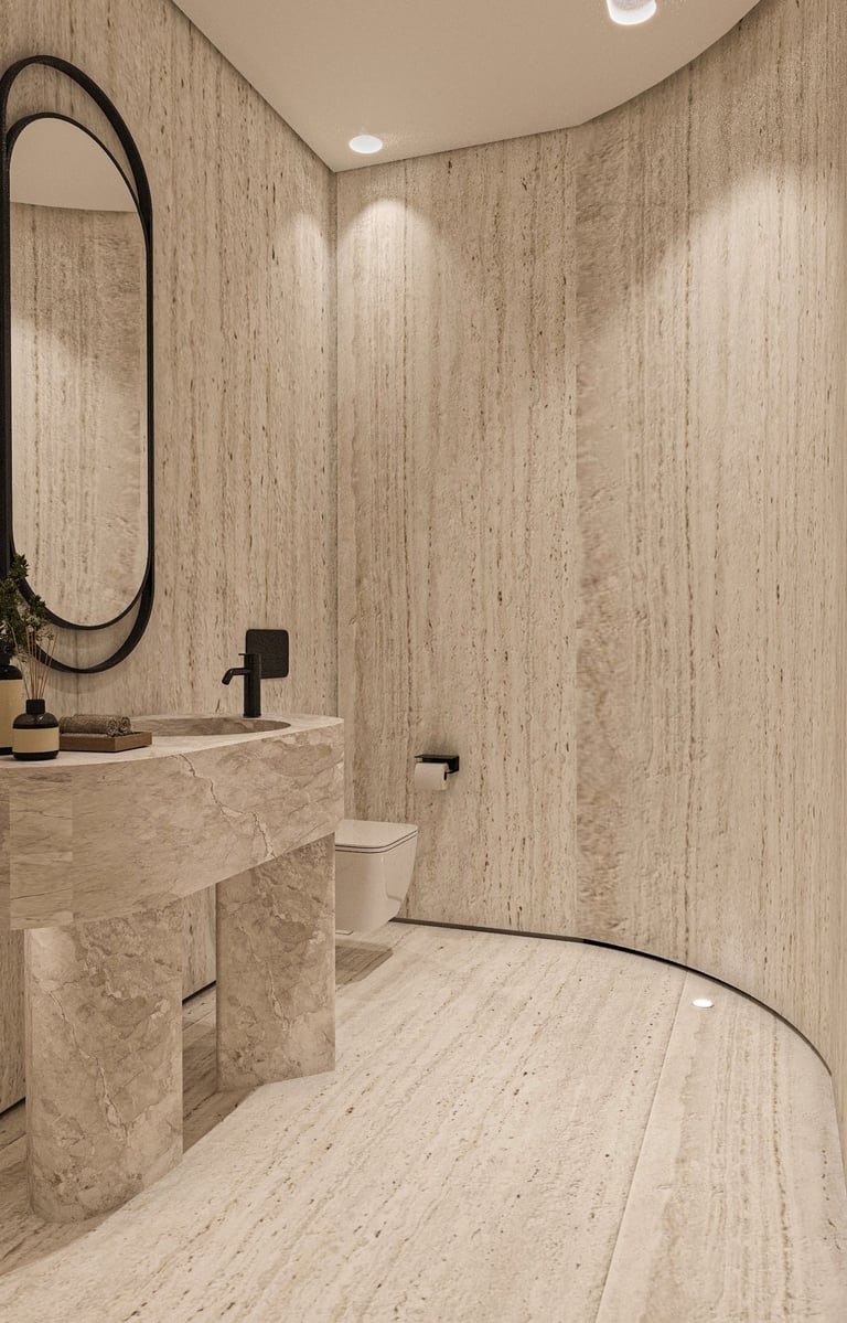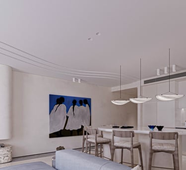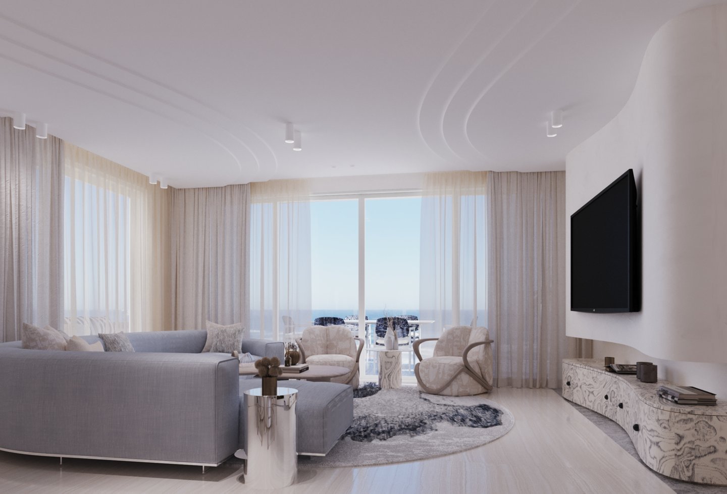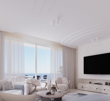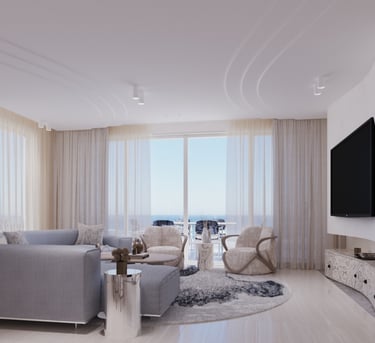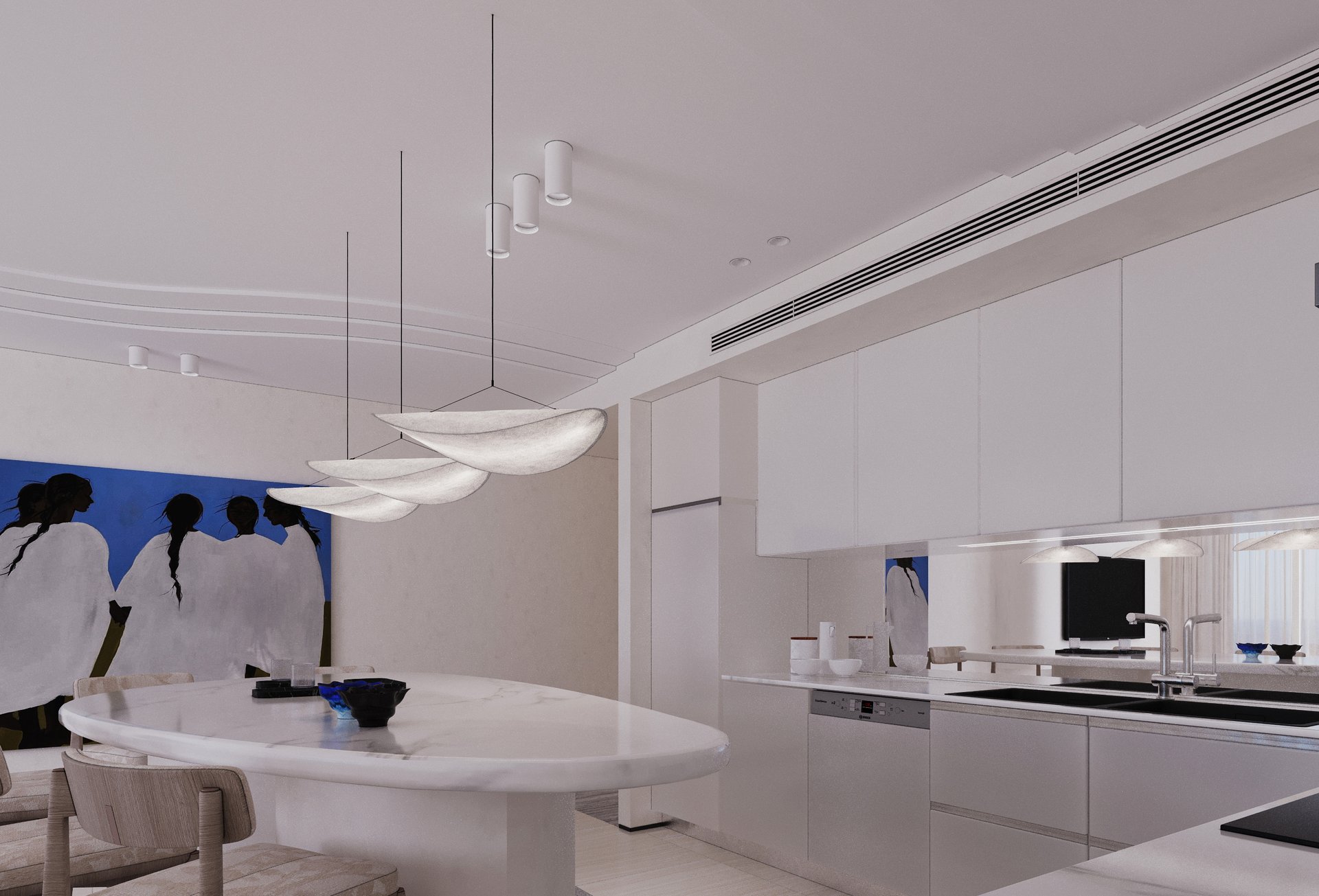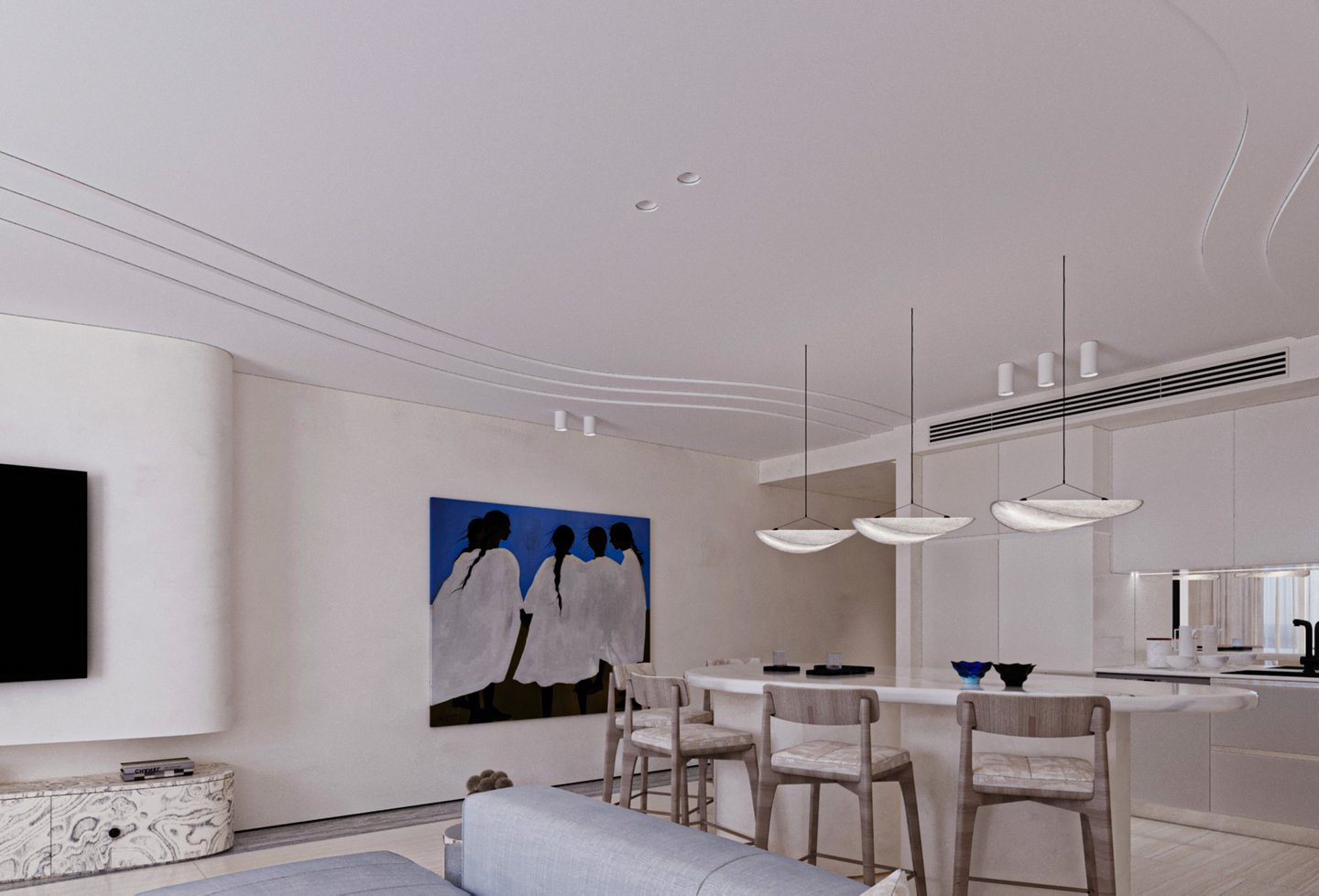 The design captures the gentle balance between calm and vitality, transforming the home into a living reflection of the water itself. From the fluid architecture to the organic furniture layouts that open toward breathtaking sea views
