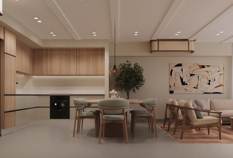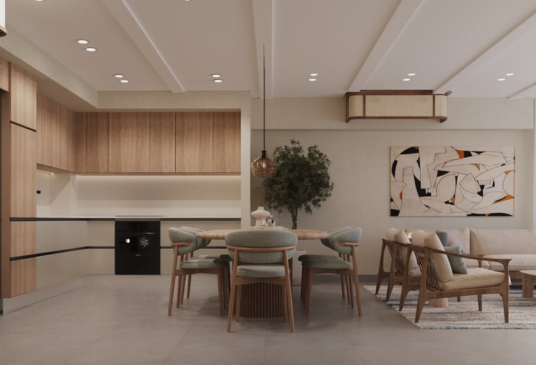 Bathed in soft light and the calm of summer, this home embodies the soul of the olive tree — timeless, grounded, and quietly strong. Rooted in rustic textures and natural beauty, its palette unfolds in shades of green, warm beige, and sun-washed stone.