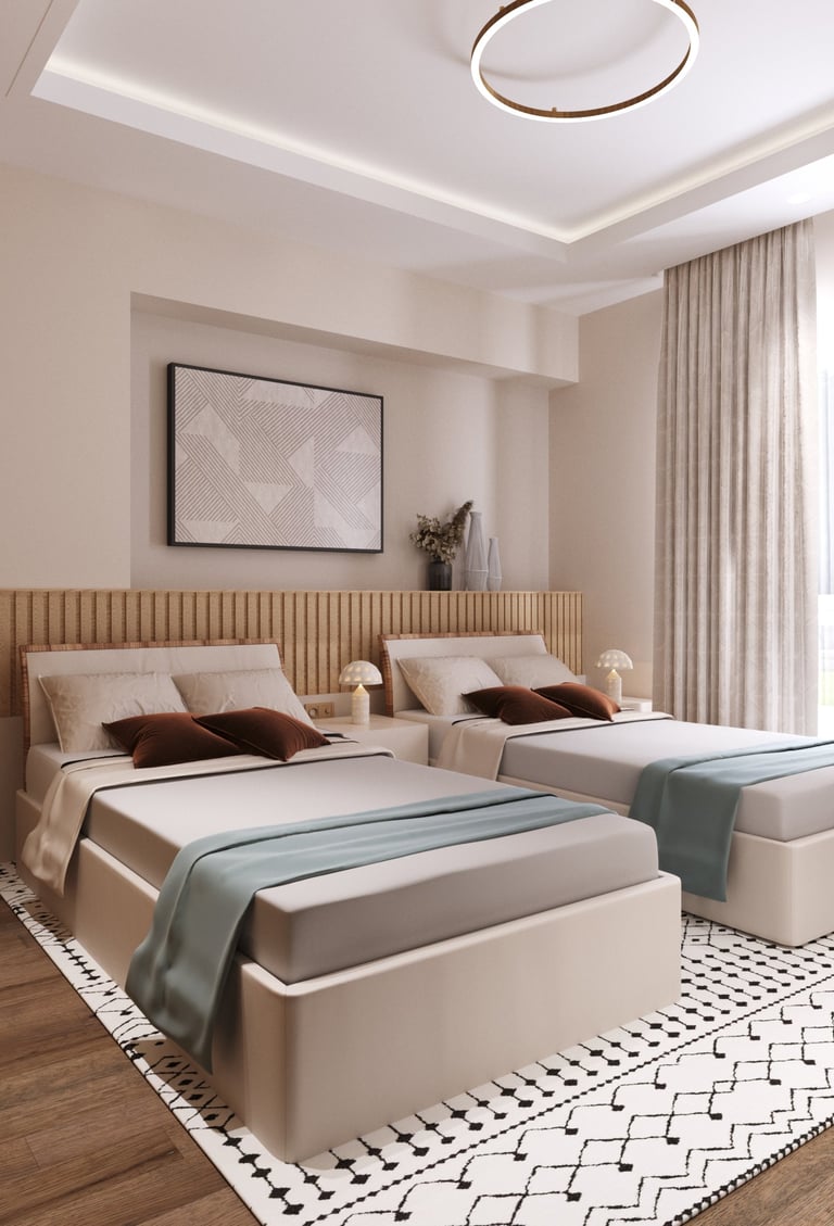 "A SANCTUARY OF SOFT GREENS, WHERE EARTHY WHISPERS MEET A TOUCH OF ENCHANTMENT "